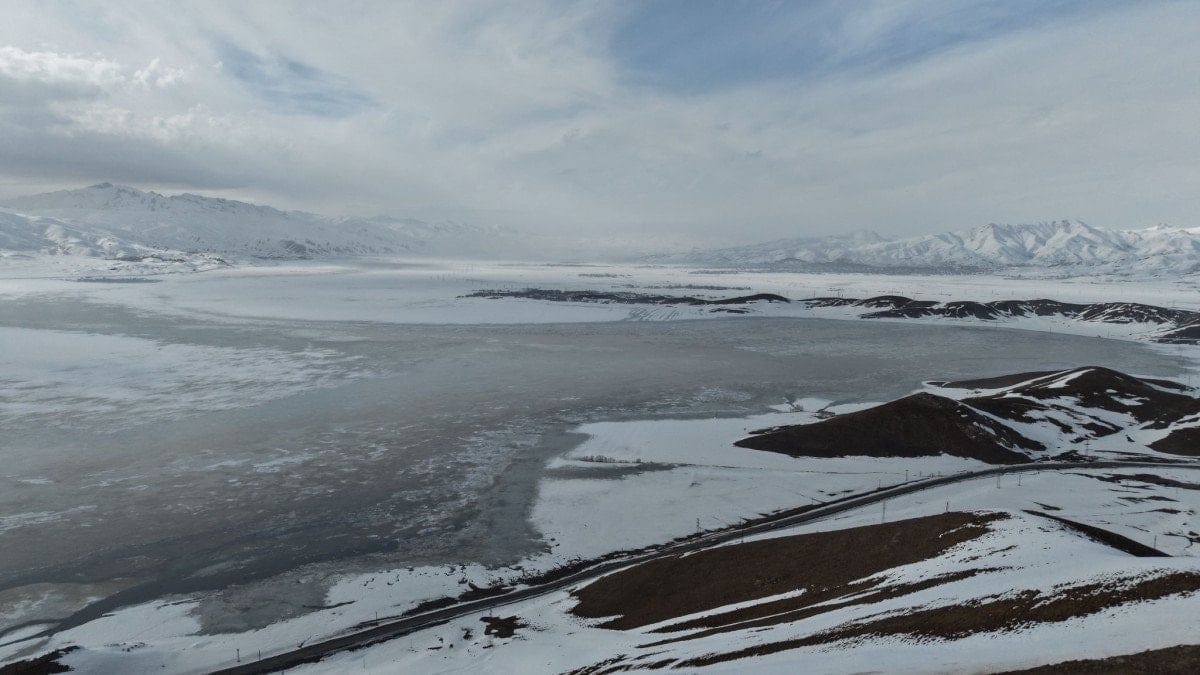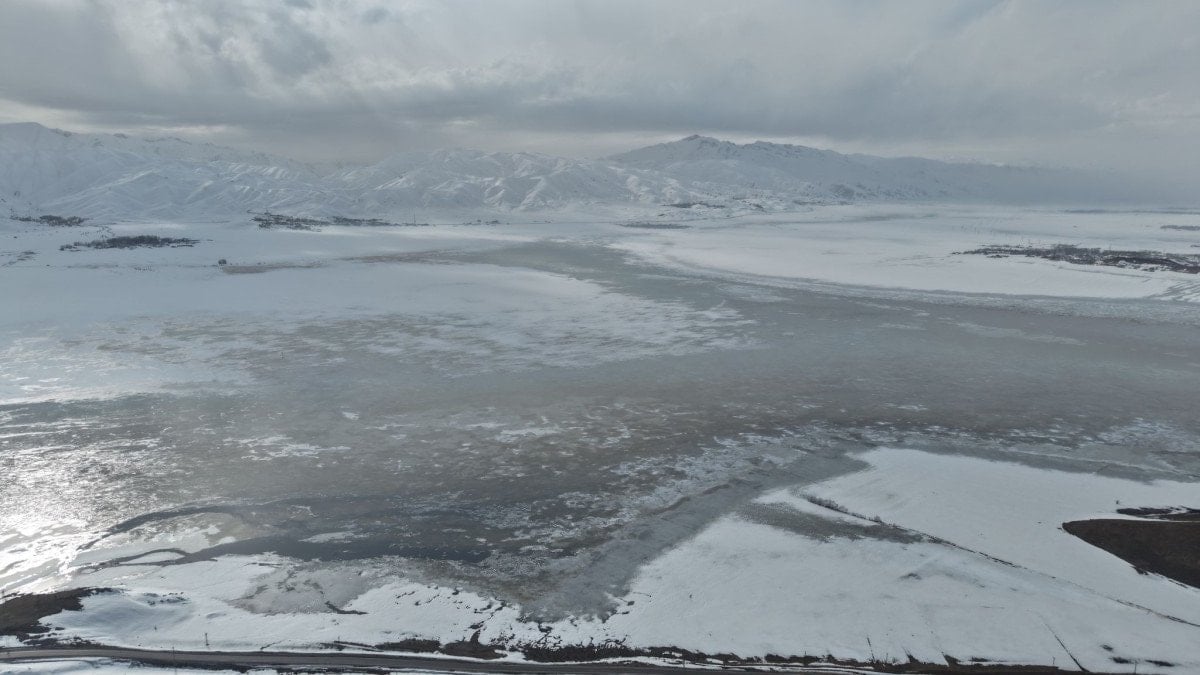 Kısmen buzla kaplı sazlık alan, doğa fotoğrafçıları Erkan Çapraz ve Rahmi İyinç tarafından drone’la görüntülendi.