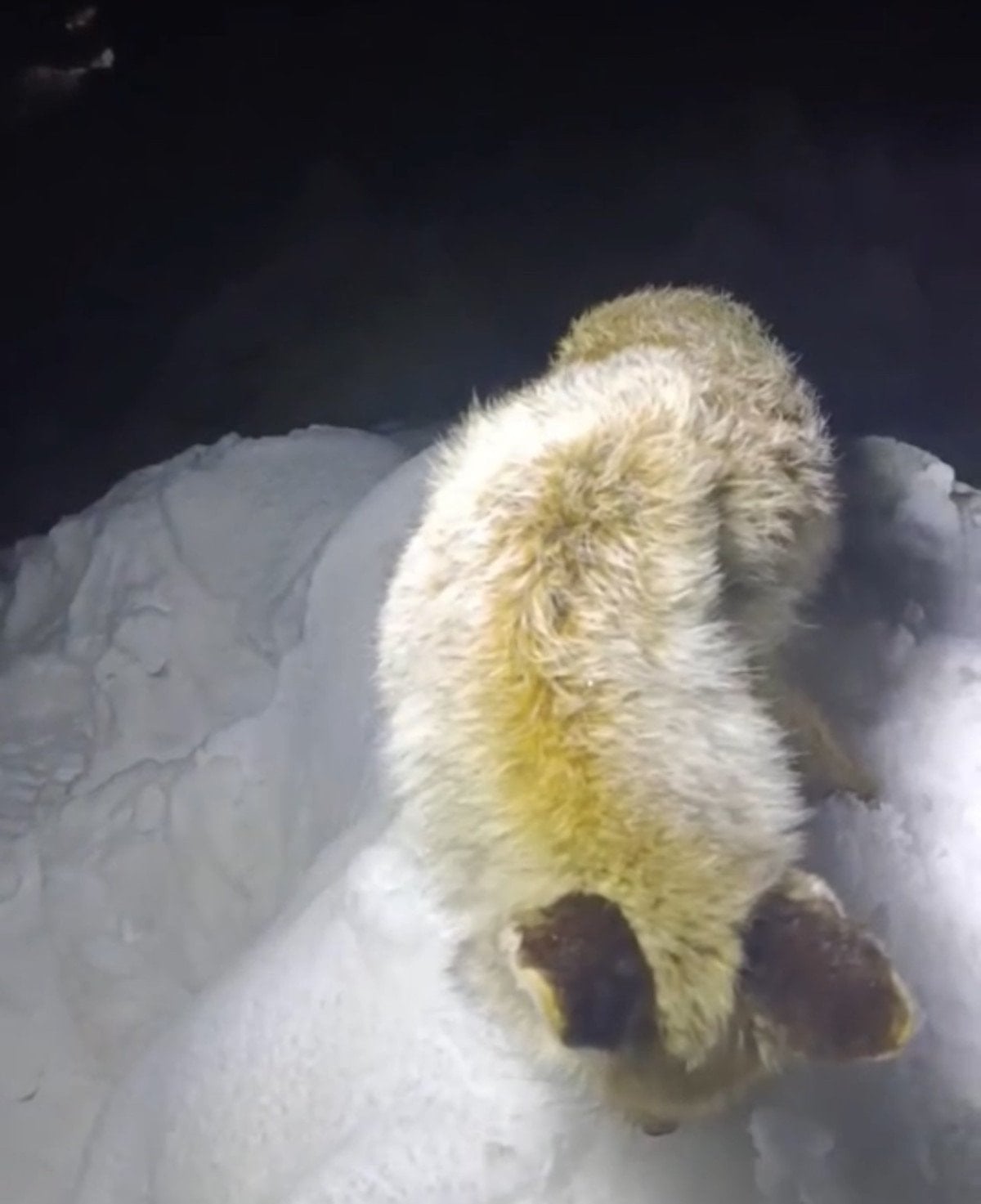 Bölgedeki zorlu kış mevsimine dikkat çeken mahalle muhtarı Arif Genç, “Kar kütlesinin üzerinde bir tilkinin hiç hareket etmeden durduğunu gördük.