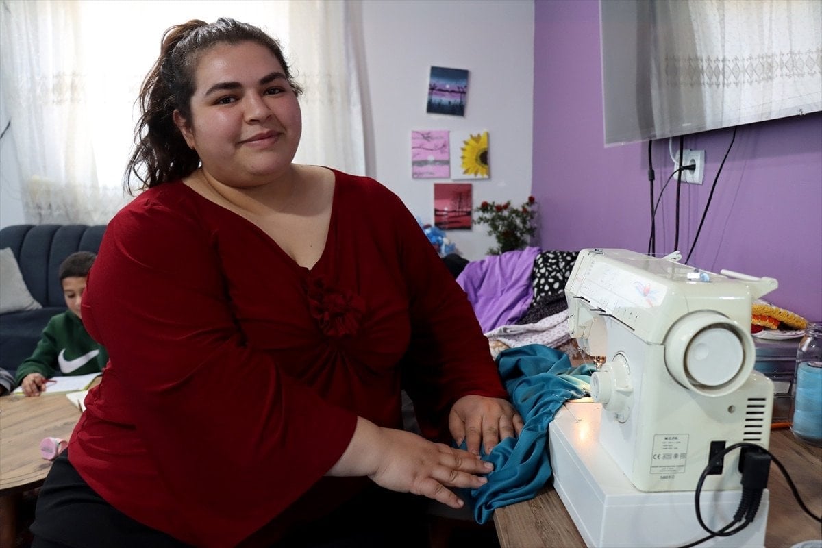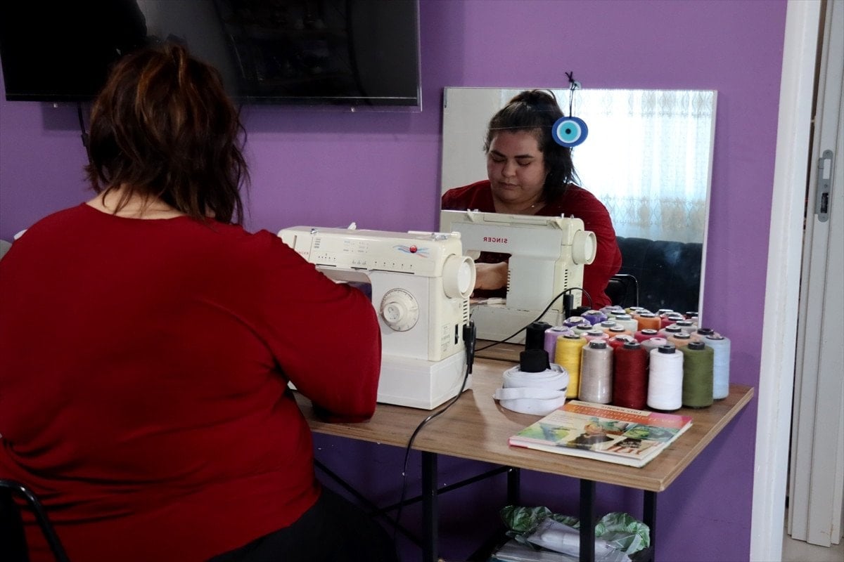 Önce sıcak bir yuvaya kavuştuk, şimdi de elim iş tutuyor. Dikiş yapabildiğimi söyledim, bana makine aldılar. Önce kendi kıyafetlerimi diktim, sonra siparişler gelmeye başladı. Kazanıyorum, en azından mutfak alışverişimi çıkarabiliyorum.