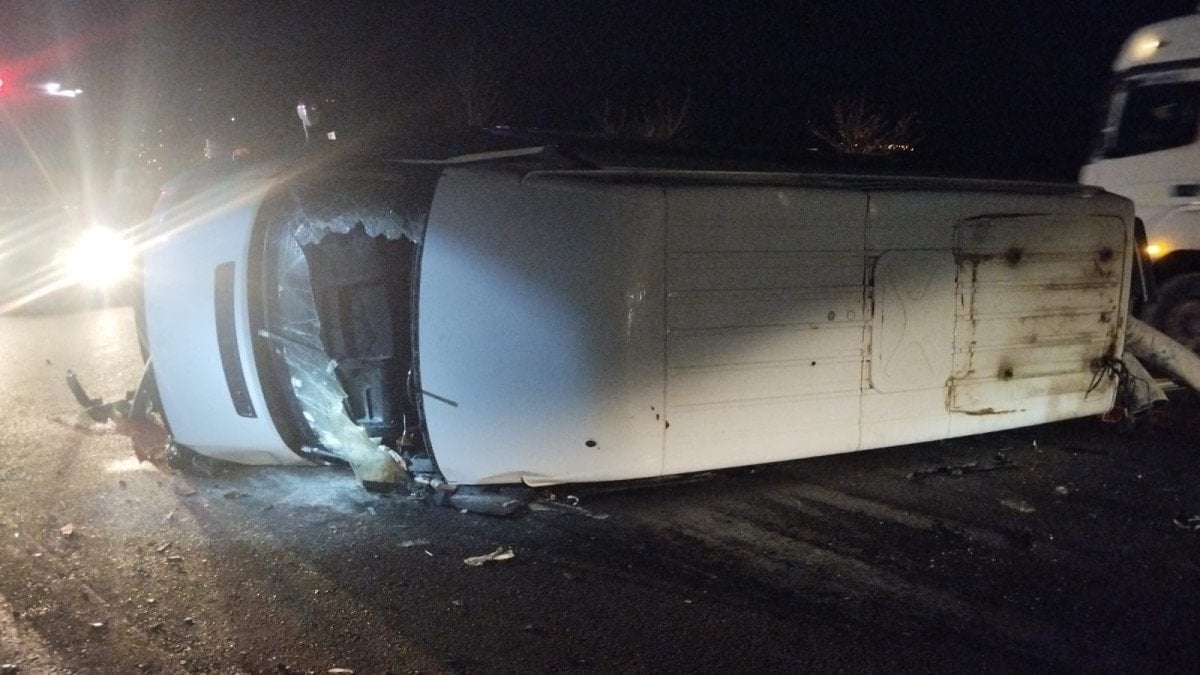 Kazanın şiddetiyle savrulan minibüs devrildi. Çevredekilerin ihbarı üzerine kaza yerine itfaiye, sağlık ve jandarma ekipleri sevk edildi.