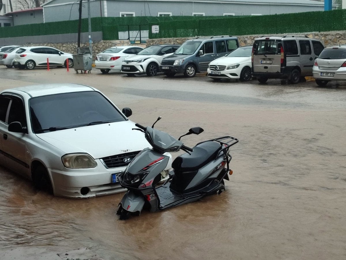 Meteoroloji’nin şiddetli yağış uyarısında bulunduğu Hatay’ın Yayladağı ilçesinde yağışla birlikte sel etkili oldu ve yollar adeta göle döndü.