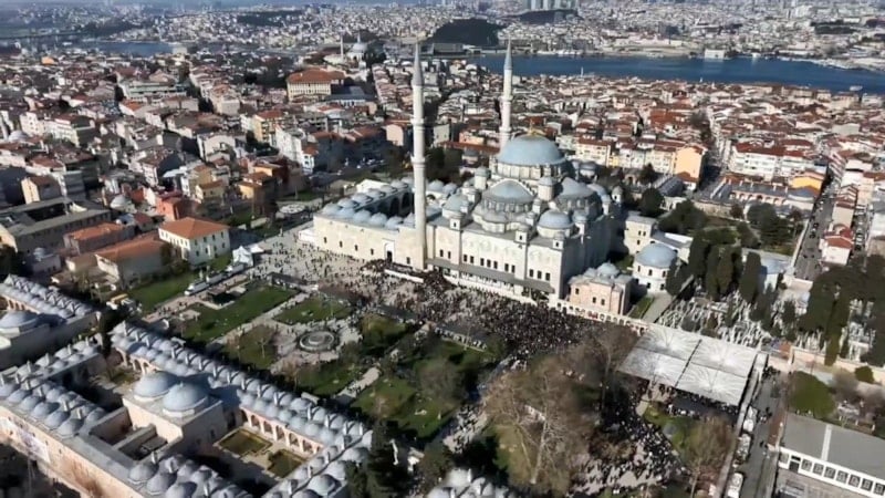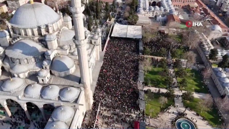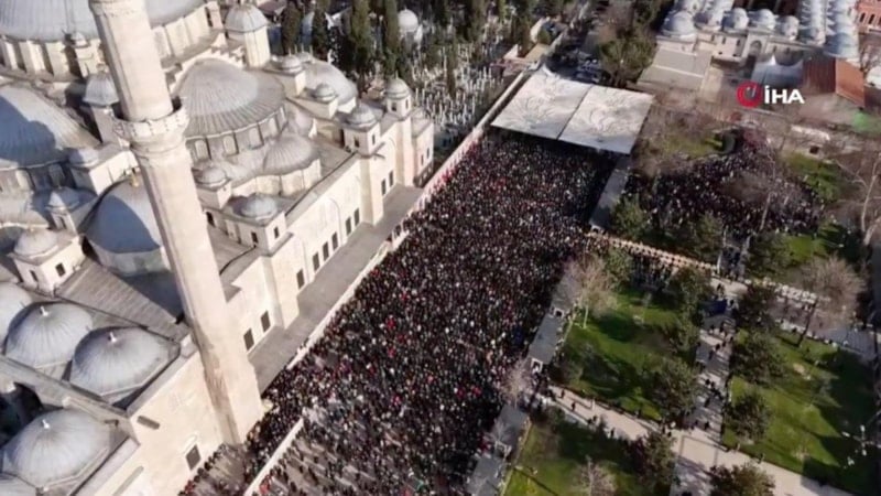 Cenazeye katılmak isteyenler erken saatlerde Fatih Camii’ne geldi. Fatih Camii ve çevresi havadan görüntülendi.