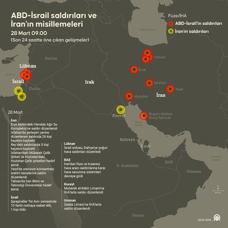28 Şubat’ta ABD ve İsrail’in, İran’ın Tahran, İsfahan, Kum, Kerec ve Kirmanşah gibi önemli şehirlerine yönelik geniş çaplı hava saldırılarıyla başlayan savaş, bir ayı geride bırakarak devam ediyor.