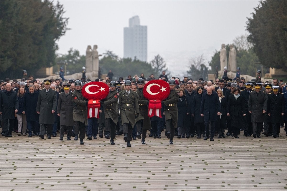 Burada İnönü’nün öz geçmişinin okunmasının ardından Cumhurbaşkanlığı, Türk Silahlı Kuvvetleri, CHP ve ailesi adına kabre çelenk bırakıldı.