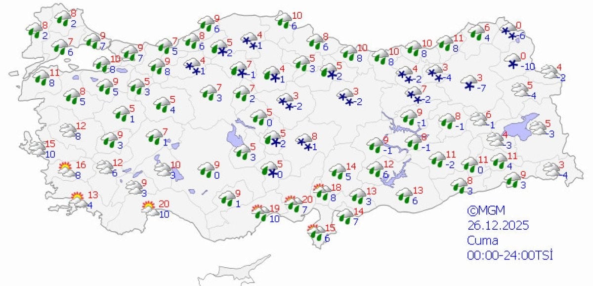 Meteoroloji 1. Bölge Müdürlüğü İstanbul Bölge Tahmin ve Erken Uyarı Merkezi’nden yapılan açıklamaya göre, 26 Aralık Cuma gününden itibaren Marmara Bölgesi’nin soğuk ve yağışlı havanın etkisi altına girmesi bekleniyor.