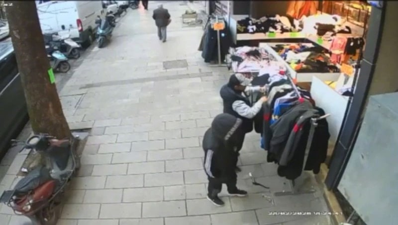 5 şüpheliden 2’si, mağaza içindeki çalışanı oyaladığı sırada, diğer 3 şüpheli dışarıda asılı bulunan ürünleri montlarının arasına koyarak uzaklaştı.