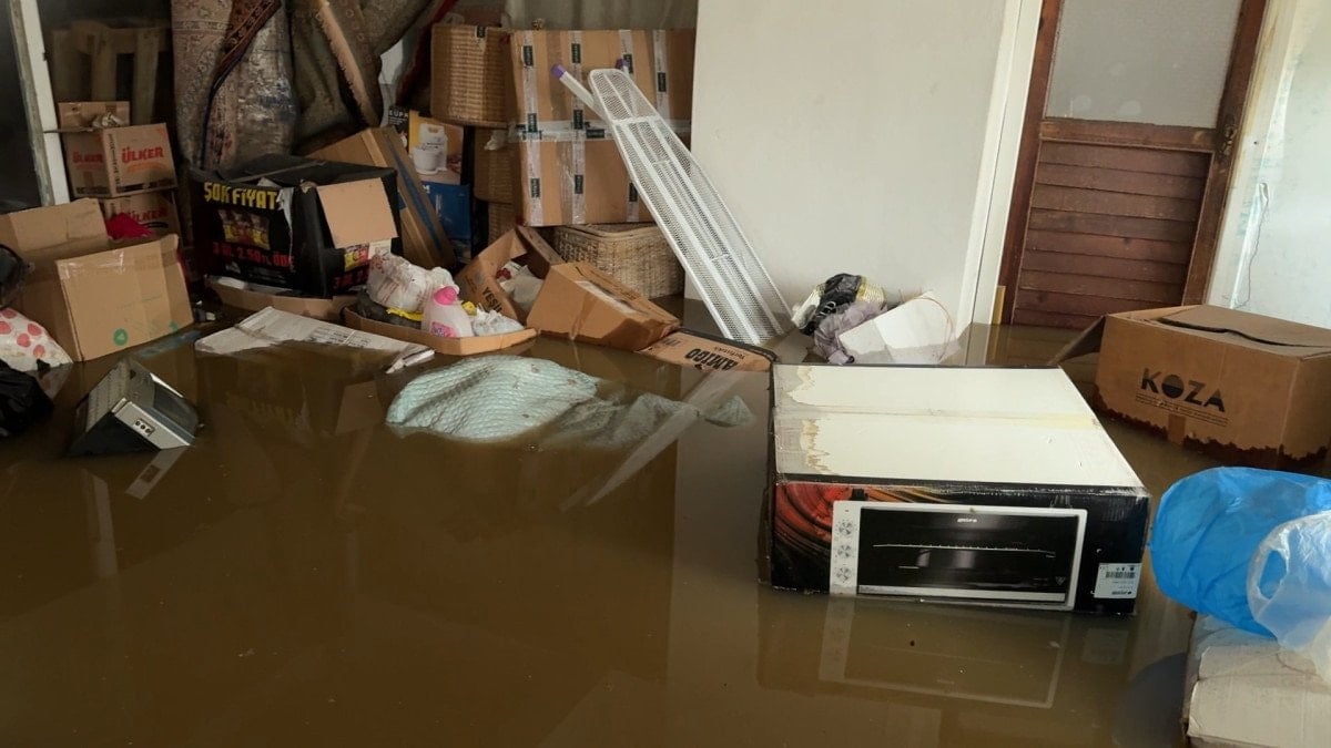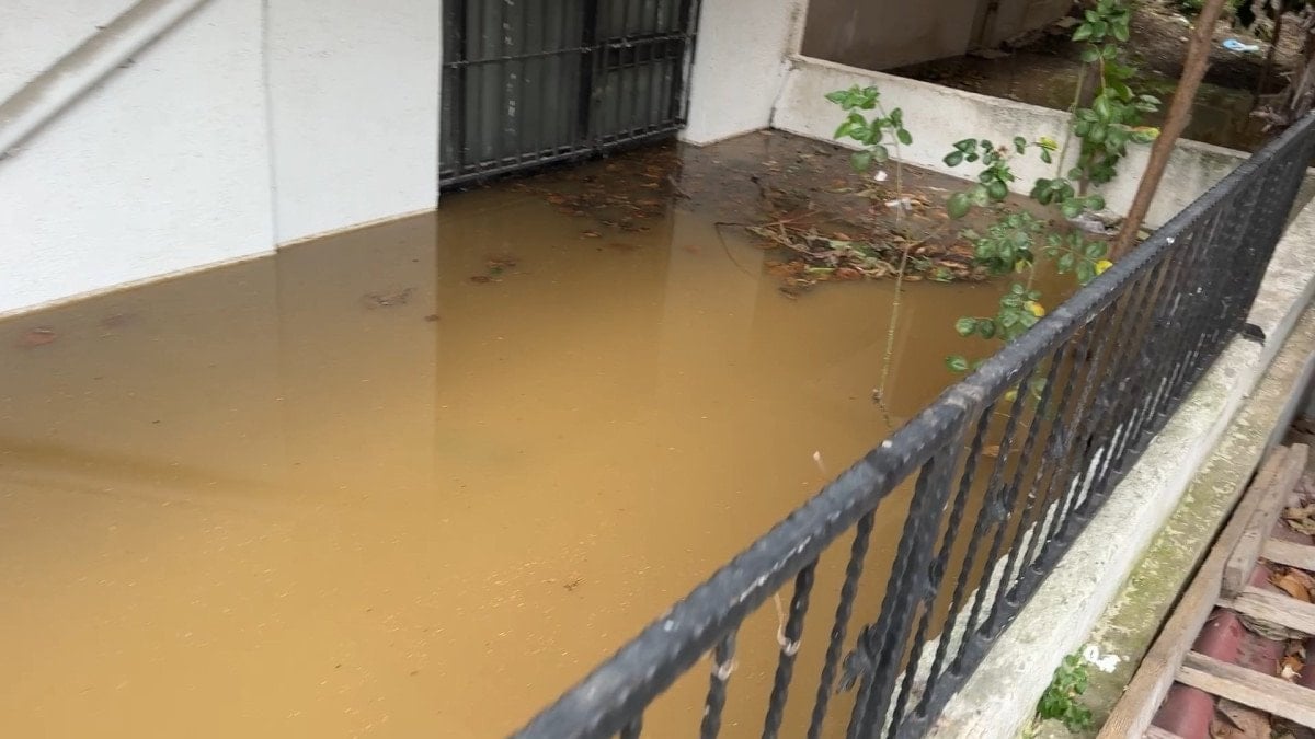 Biriken pis su, yaklaşık 15 metre ileride bulunan bir binanın bodrum katı ile bahçe katına doldu. Evdeki tüm eşyalar sular içinde kaldı.