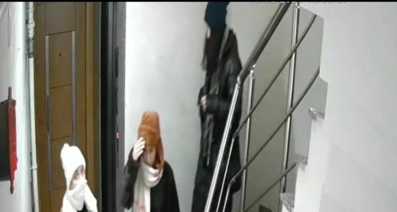Görüntülerde, kadınların apartman içinde katları dolaşarak kapıları dinledikleri, dairelerin dolu olduğunu fark ettiklerinde ise binadan ayrıldıkları görüldü.