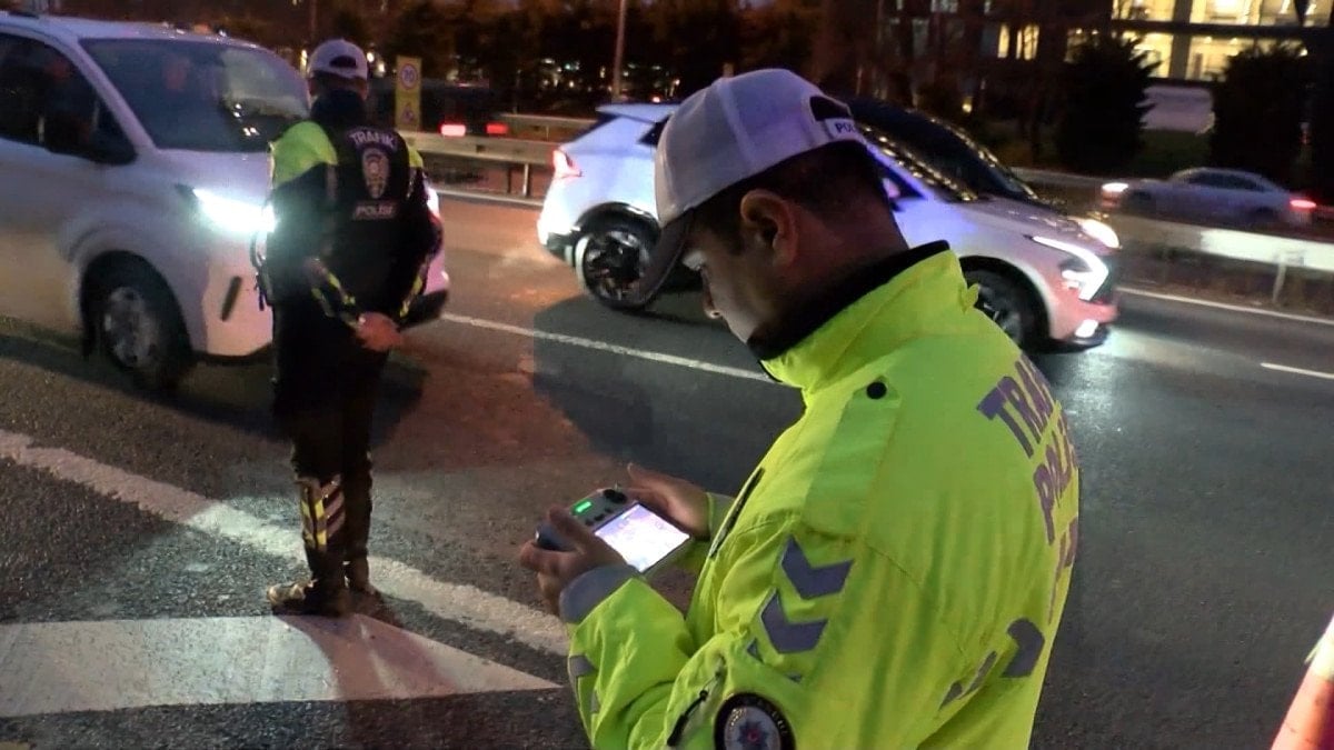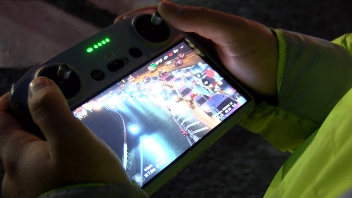 Polis ekipleri taralı alan ihlali yapan sürücüleri, drone ile havadan tespit etti.