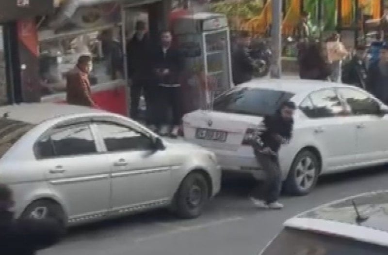 Kavga anları ise çevredeki kişiler tarafından cep telefonuyla kaydedildi.
