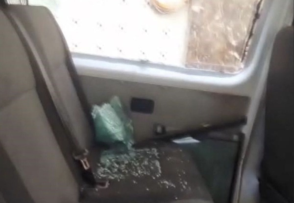Tam biz çıkmaya yaklaşıyoruz, bağırıyorum diyorum ki ‘Durun bak çocuk bıçaklanmış’ Dinlemiyorlar. Arabayı parçaladılar, önümüzü kestiler. Arabanın önüne çekiç fırlatıyorlar. Her şeyi yaptılar, araç paramparça oldu.