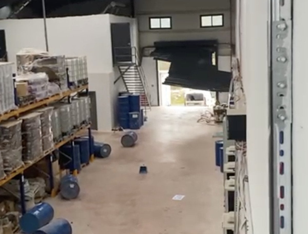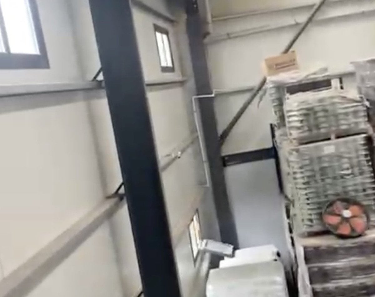 Rüzgarın, malzemeleri bir duvardan diğerine savurduğu anlar görüntülenirken, fırtınanın yıkıcı etkisini sanayi de yaşamış oldu.
