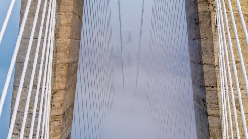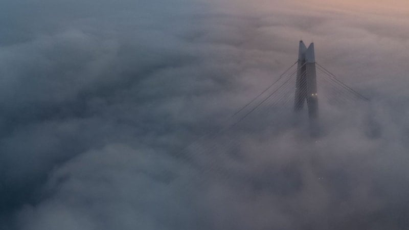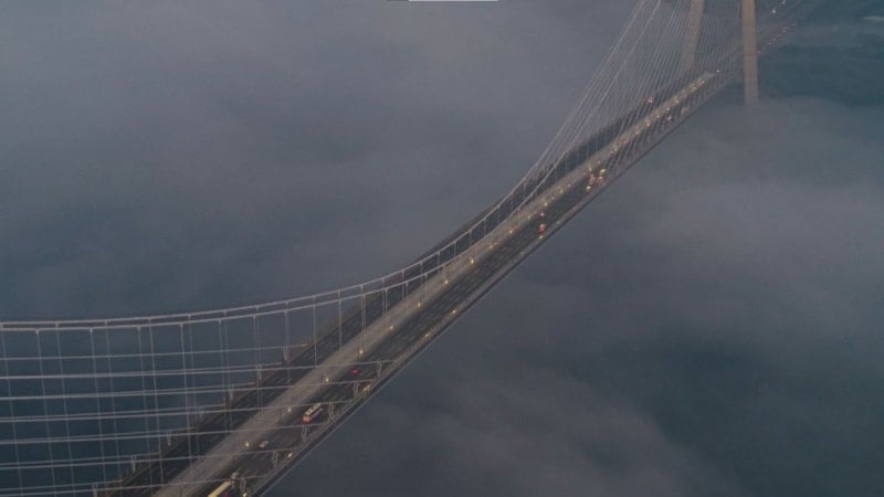 Kentin simge yapılarından biri olan Yavuz Sultan Selim Köprüsü, günün ilk ışıklarıyla birlikte etkileyici bir görünüme büründü. Boğaz üzerinde yoğunlaşan sis tabakası, köprünün büyük bölümünü sararken, yapı zaman zaman bulutların arasından siluet halinde ortaya çıktı.