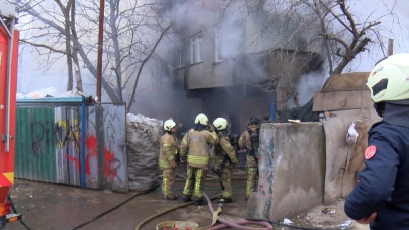 Ferhatpaşa Mahallesi 75’inci sokakta bulunan plastik madde ve hurdaların toplandığı 3 katlı binanın giriş katında yangın çıktı.