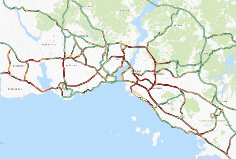 Okmeydanı TEM Otoyolu bağlantı yolu, Nurtepe Viyadük, Hasdal, Seyrantepe, Fatih Sultan Mehmet Köprüsü ile Büyükdere Caddesi, Levent TEM bağlantı yolu mevkilerinde çift yönlü trafik yoğunluğu yaşanıyor.