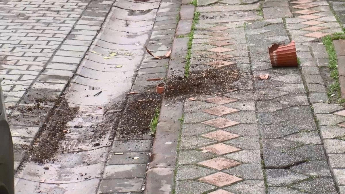 Sesleri duyup balkona çıkan bir kadın, kavgayı ayırmak için balkondaki saksıyı saldırganların üzerine attı.