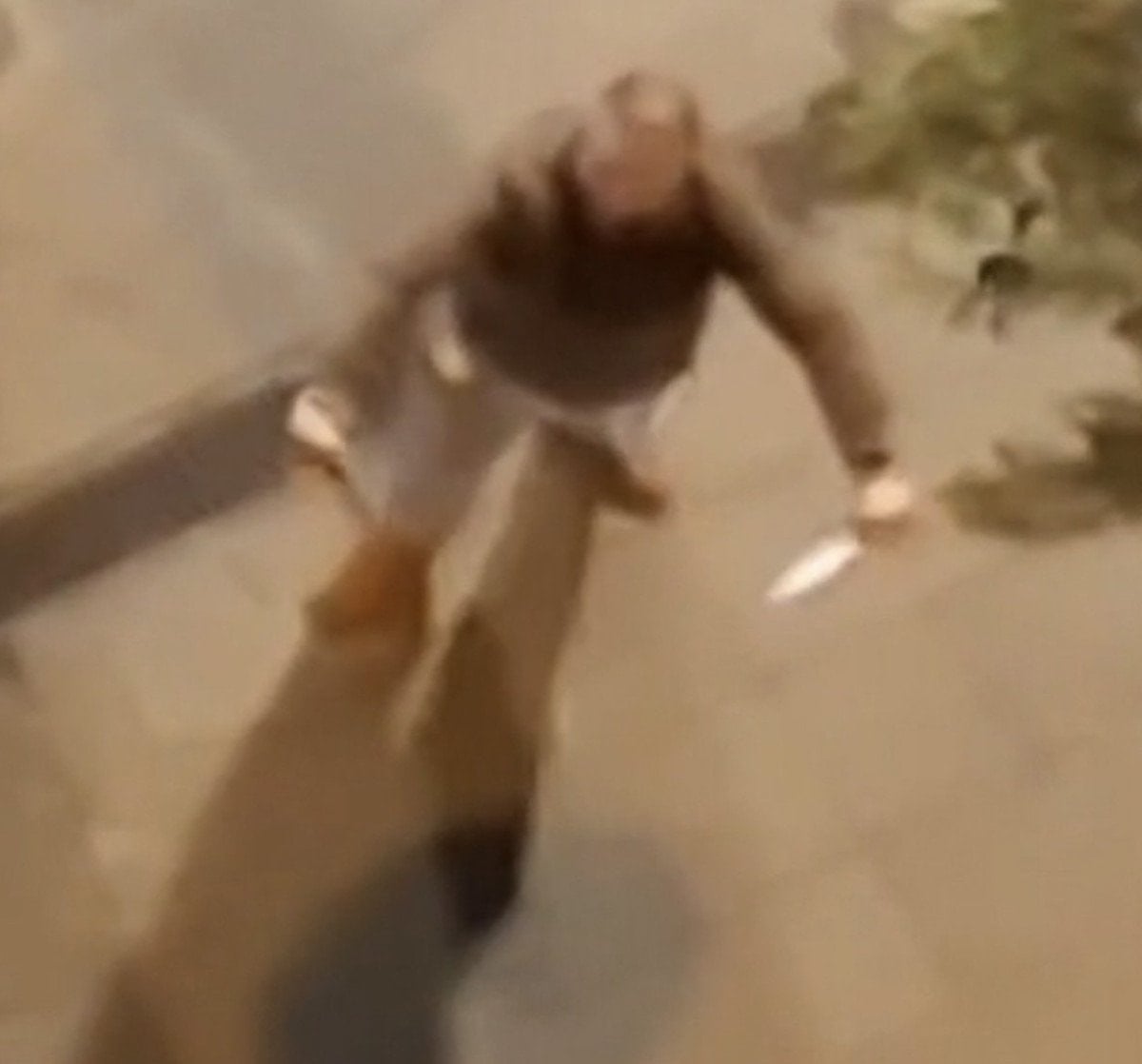 Bir süre sonra tekrar ayağa kalkan saldırgan, elindeki bıçakla bir kez daha saldırınca bu kez de arkasından yaklaşan kişi, saldırgana yumruk attı.