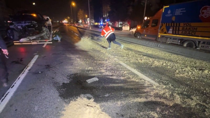 Araç çağrılan çekici yardımıyla olay yerinden kaldırılırken, yolda temizlik çalışması yapıldı.