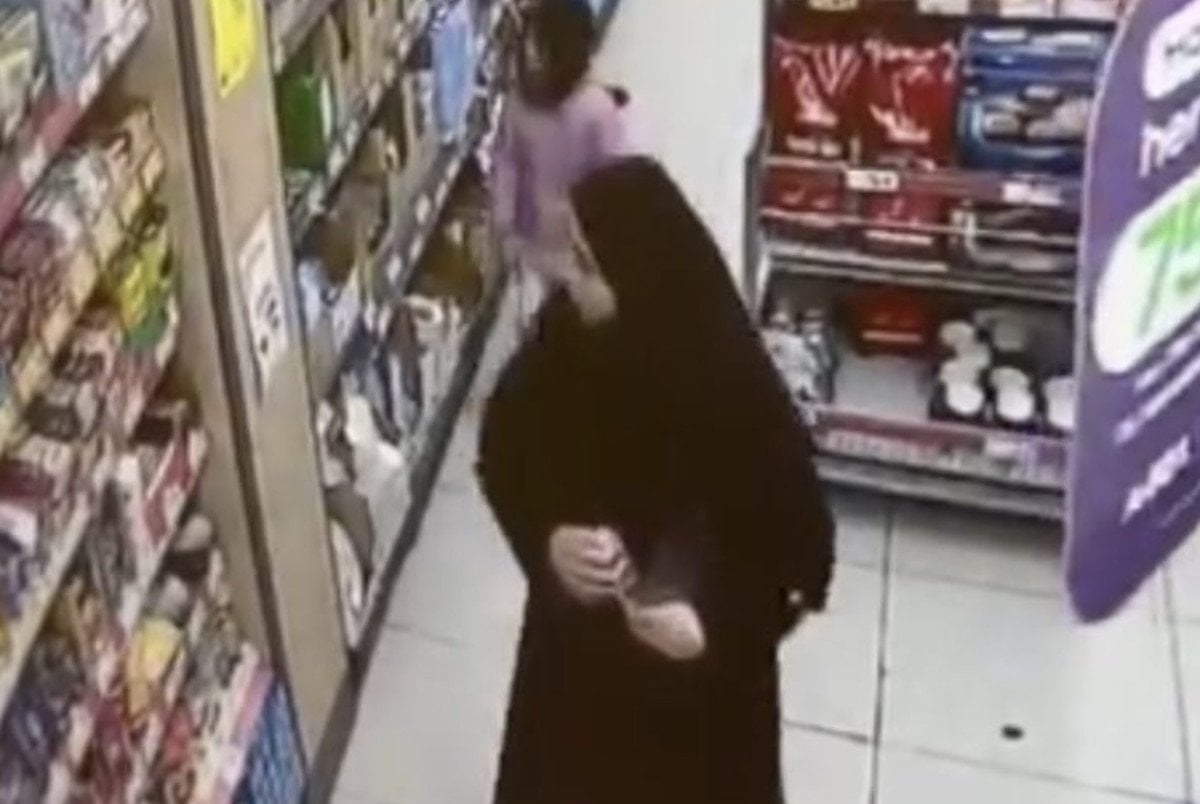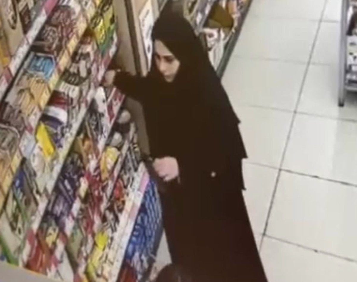Görüntülerde, kadın şüphelinin rafın üzerinde duran cep telefonu fark etmesinin ardından çantasına koyması ve marketten alışveriş yaparak çıktığı anlar yer aldı.