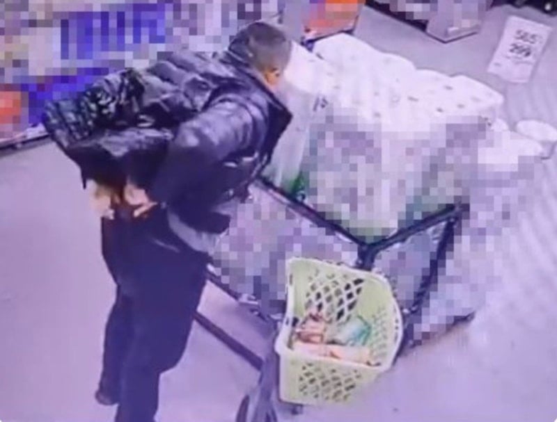 Etraftaki ürünlere bakarak kimsenin görmediğinden emin olduğunda ise iki şişe alkolü saniyeler içinde pantolonuna soktu.