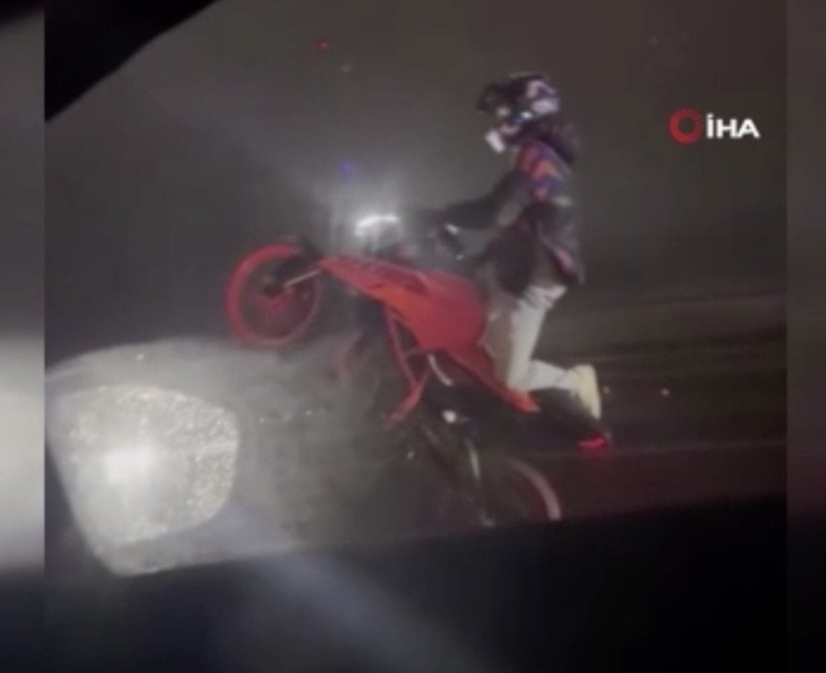 İstanbul’da motosikletlinin akrobatik hareketleri kamerada