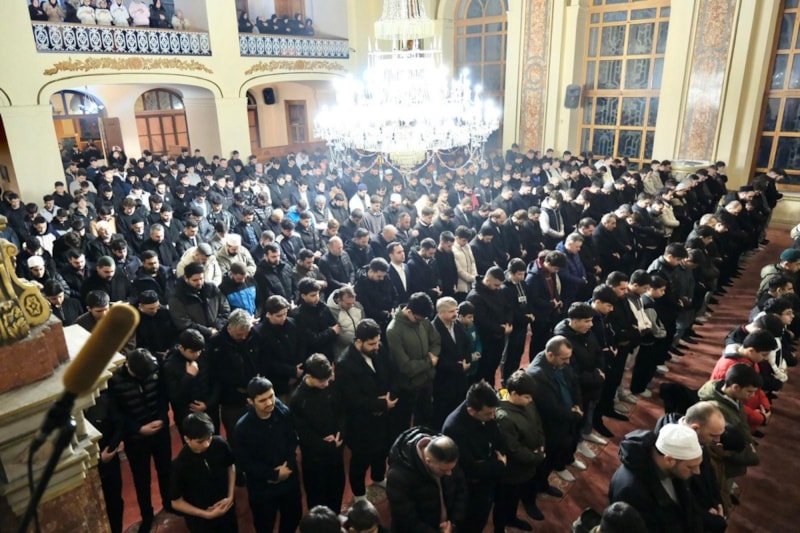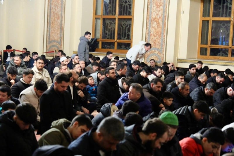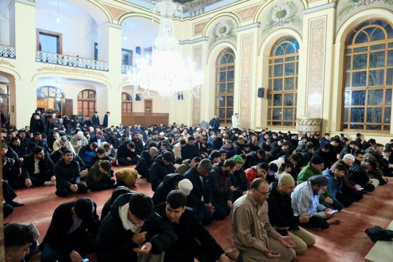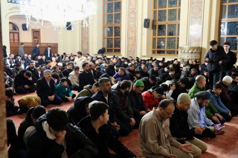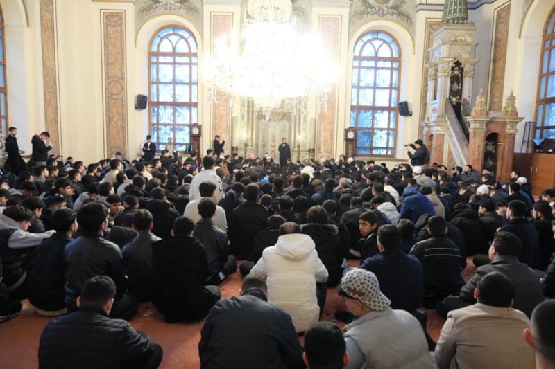 Sabah Namazının ardından camiyi dolduran gençler hep birlikte salavatlar getirip dua etti.