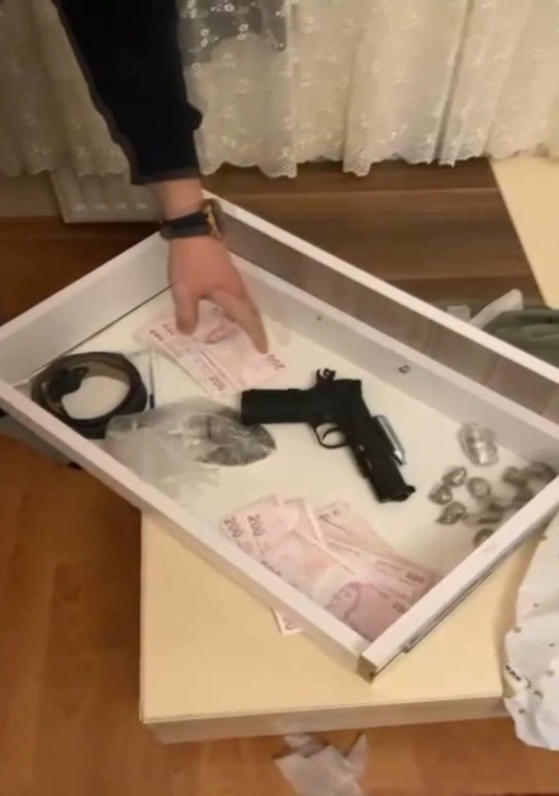Yapılan aramalarda 163,13 gram metamfetamin, 8,39 gram eroin, 48 adet narkotik hap, 7 kök kenevir, 1 kilo 669 gram esrar, 50 gram kokain, 48 kilo 114 gram skunk, 1 ruhsatsız tabanca, 1 havalı tabanca ve 118 bin 700 lira ele geçirildi.