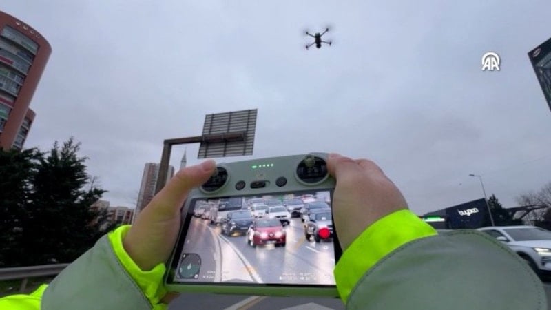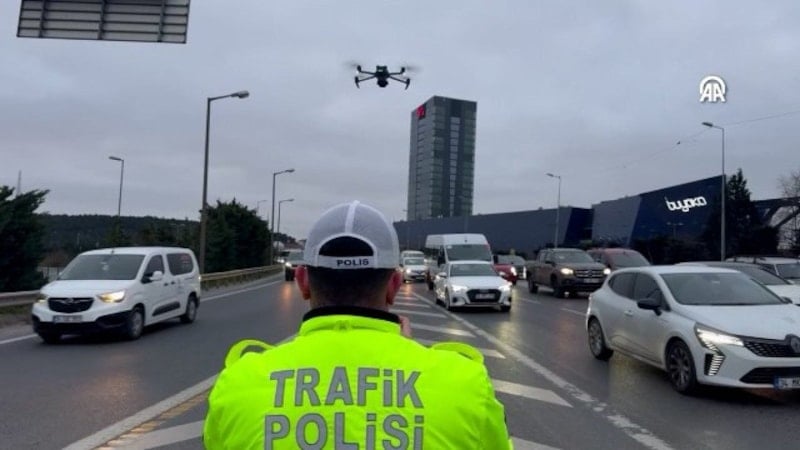 İl Emniyet Müdürlüğü Trafik Denetleme Şubesi ekipleri, sabah saatlerinde Zeytinburnu, Eyüpsultan ve Ümraniye’de taralı alan ihlali yapan sürücüleri drone ile denetledi.