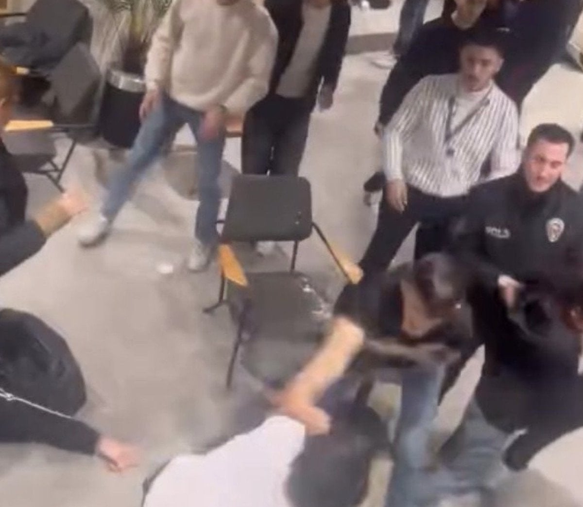 Olay yerine gelen polis ekiplerine rağmen taraflar birbirlerine sandalyelerle saldırdı.