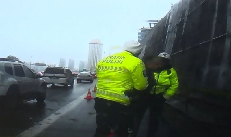 İstanbul’da trafikte boğazına şeker kaçan vatandaşa polisten Heimlich manevrası