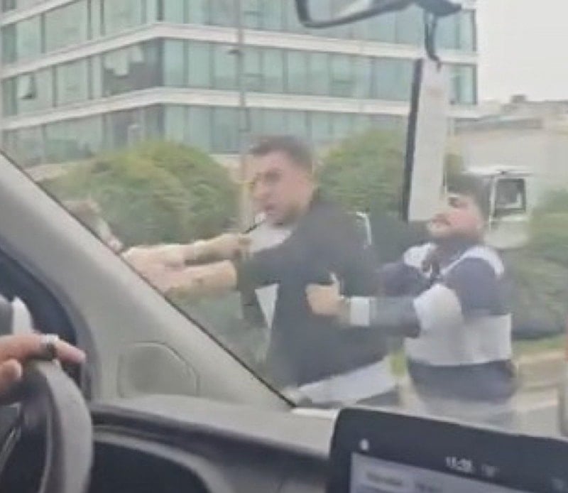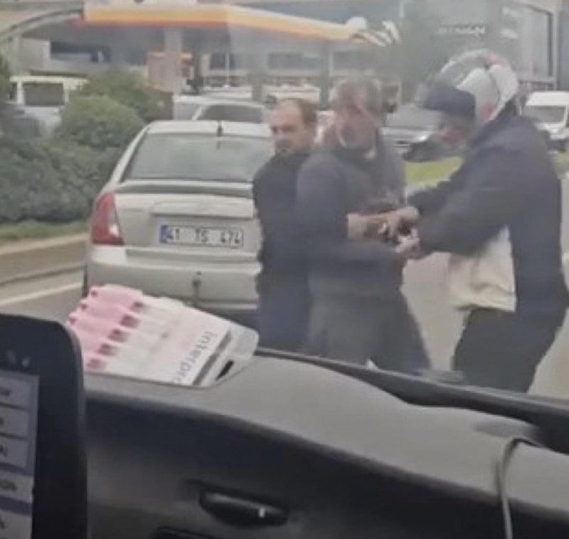 Yaşanan kavga, çevredeki başka bir sürücü tarafından cep telefonu kamerasıyla kaydedildi.
