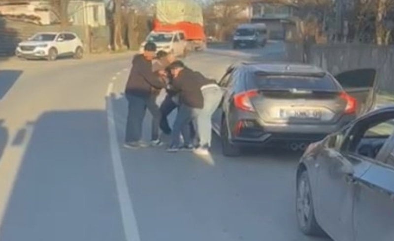 İstanbul’da trafikte yumruklu kavga kamerada: Cadde boks ringine döndü