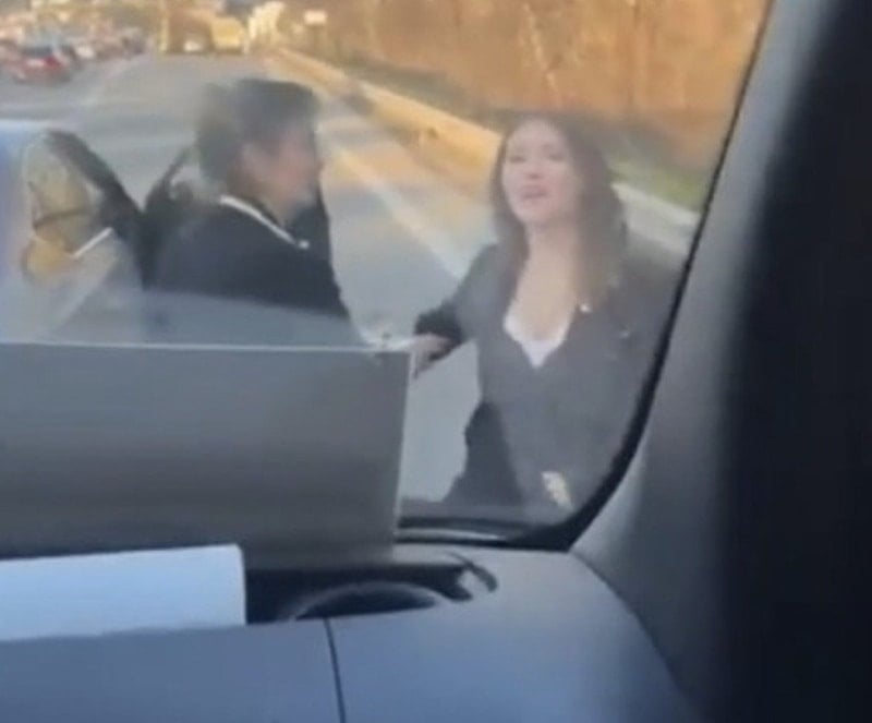 Daha sonra aracından inen sürücü yanındaki kadının engellemelerine rağmen şoföre küfür ve hakaret etti.