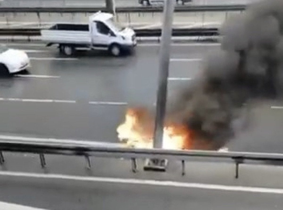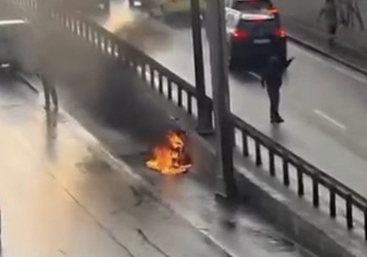 İstanbul’da yolun ortasında motosiklet alev alev yandığı anlar kameraya yansıdı