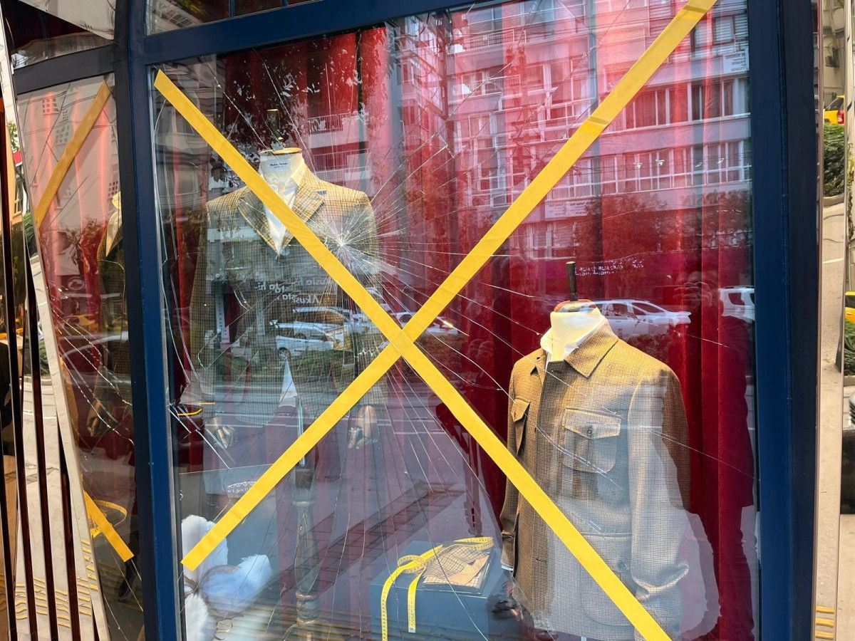 Darbelerin etkisiyle iş yerinin camı kırıldı.