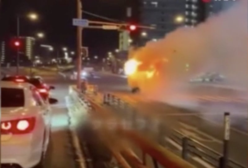 Japonya’da alev alan kamyoneti itfaiye istasyonuna kadar sürdü