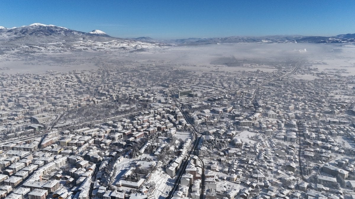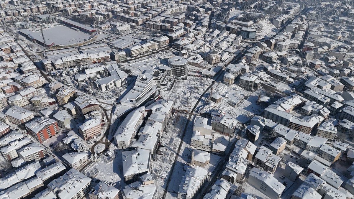 Karla kaplanan kent, dronla görüntülendi.