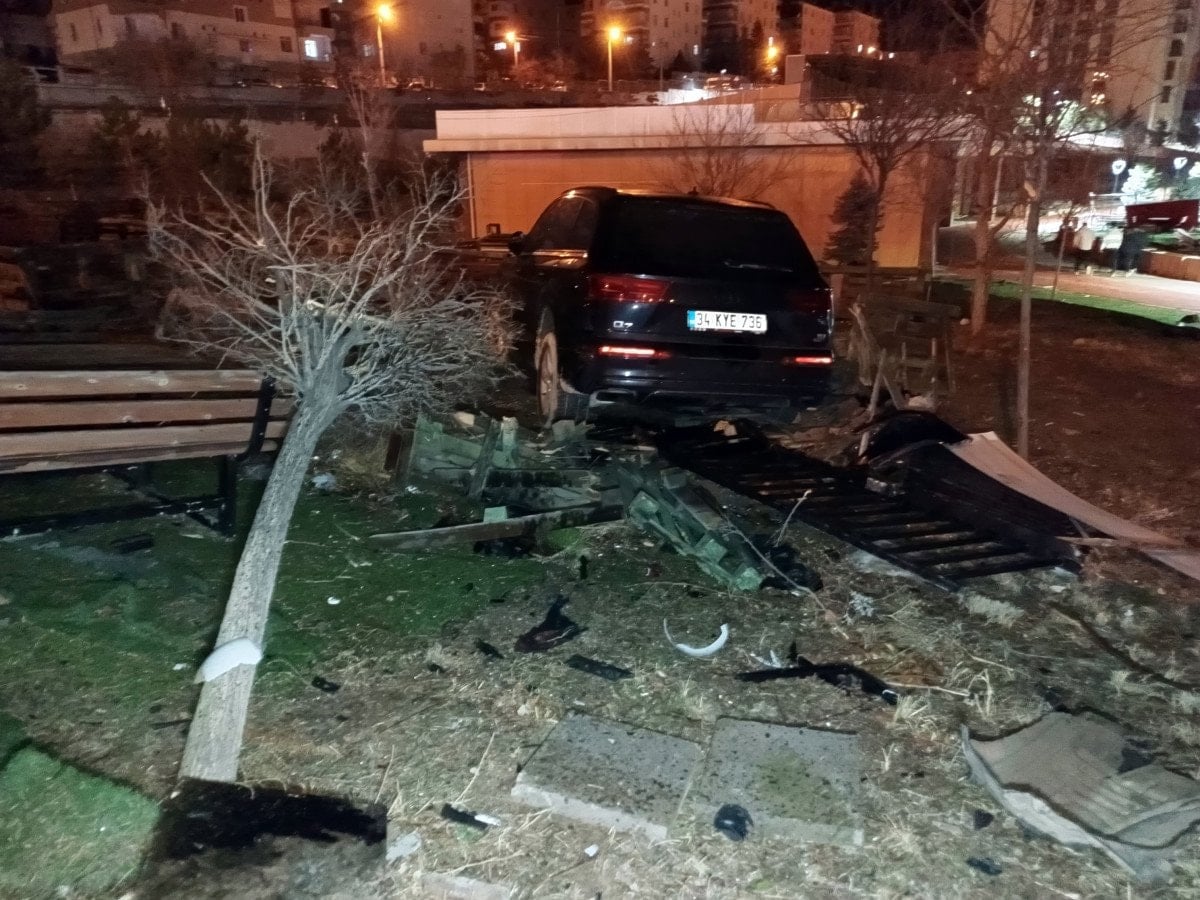Karaman Gevher Hatun Mahallesi Piri Reis Köprülü Kavşağı altında  Ekrem A. yönetimindeki otomobil, sürücüsünün kontrolünden çıkıp kaldırımdaki aydınlatma direğini, bahçe duvarındaki demir korkuluğu ve ağacı devirip, bir kafenin bahçesine uçtu. İhbar üzerine, adrese polis ve sağlık ekipleri sevk edildi.