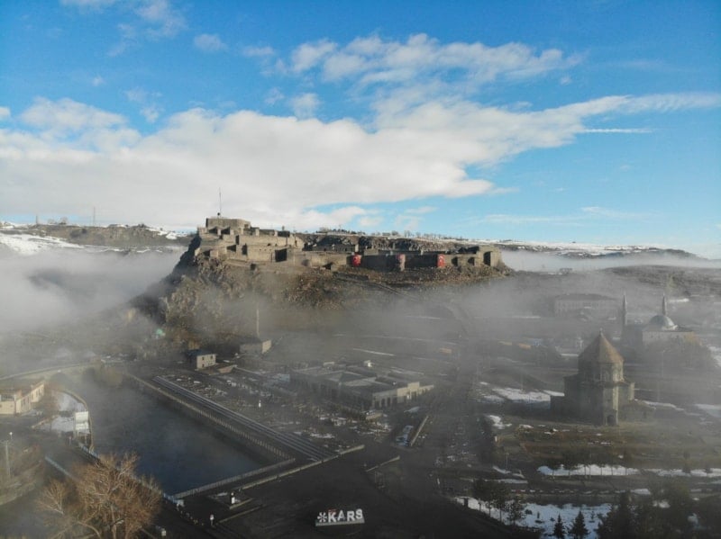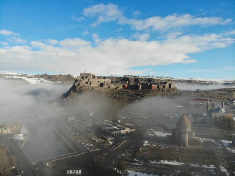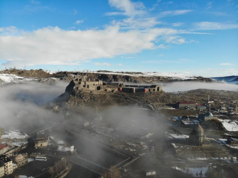Kars Kalesi sis bulutları arasında görsel şölen oluşturdu