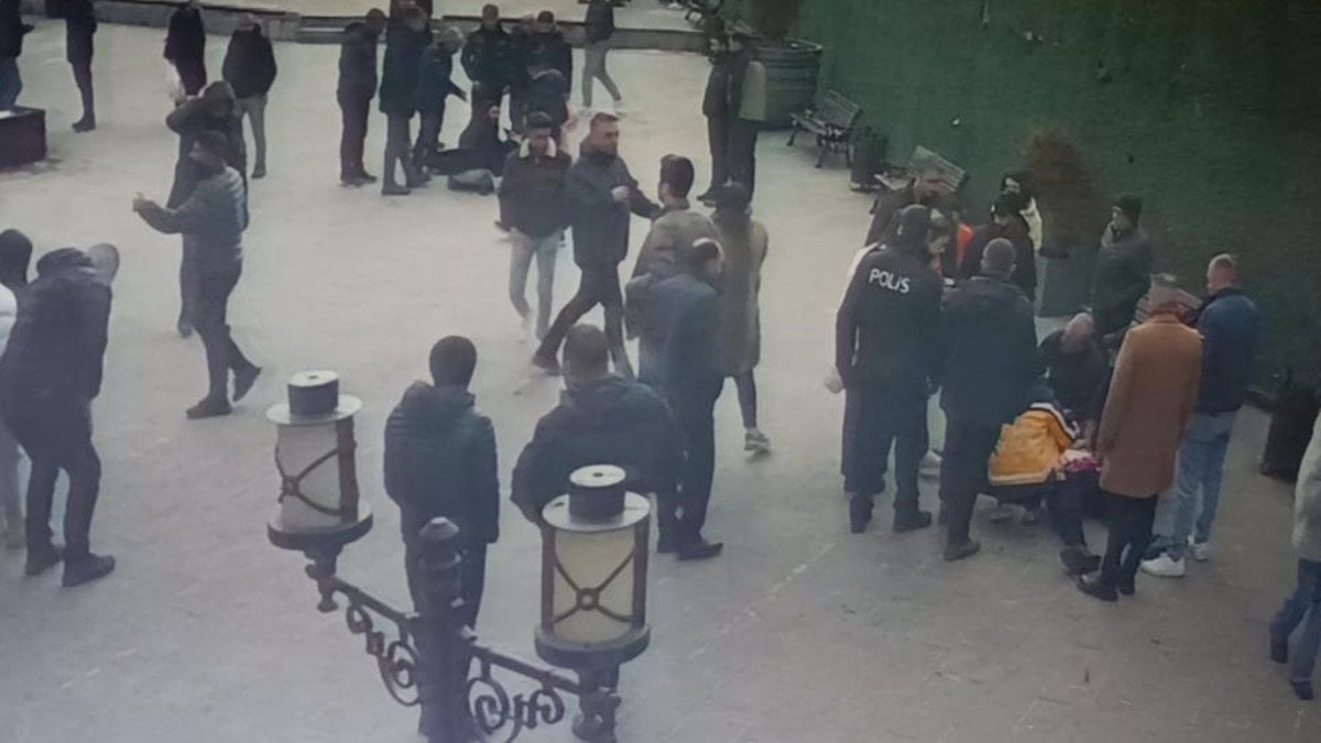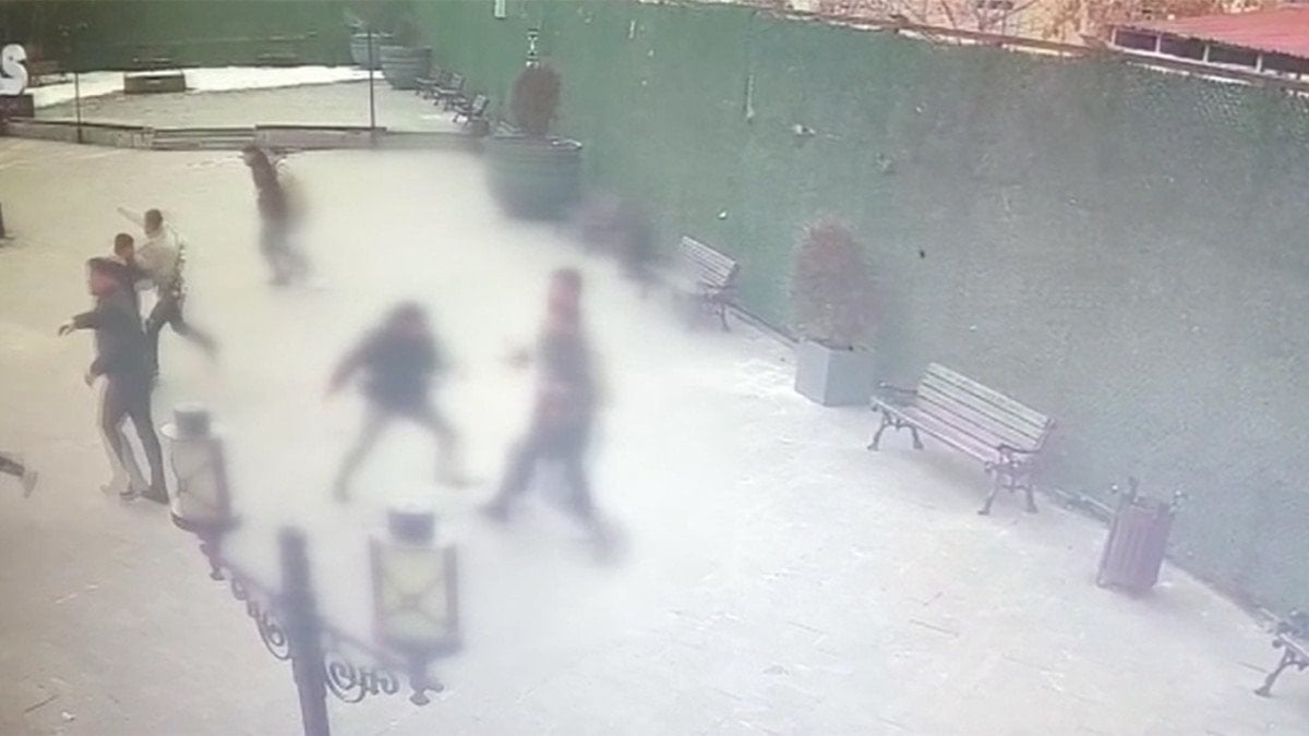 Güvenlik kamerasınca kaydedilen görüntülerde yumruklaşmanın yaşandığı, bir kişinin bıçakla tartıştığı kişilere saldırdığı, yaralıların yere düşmesi, vatandaşların yaralılara müdahalesi ile ekiplerin olay yerine gelmesi yer aldı.