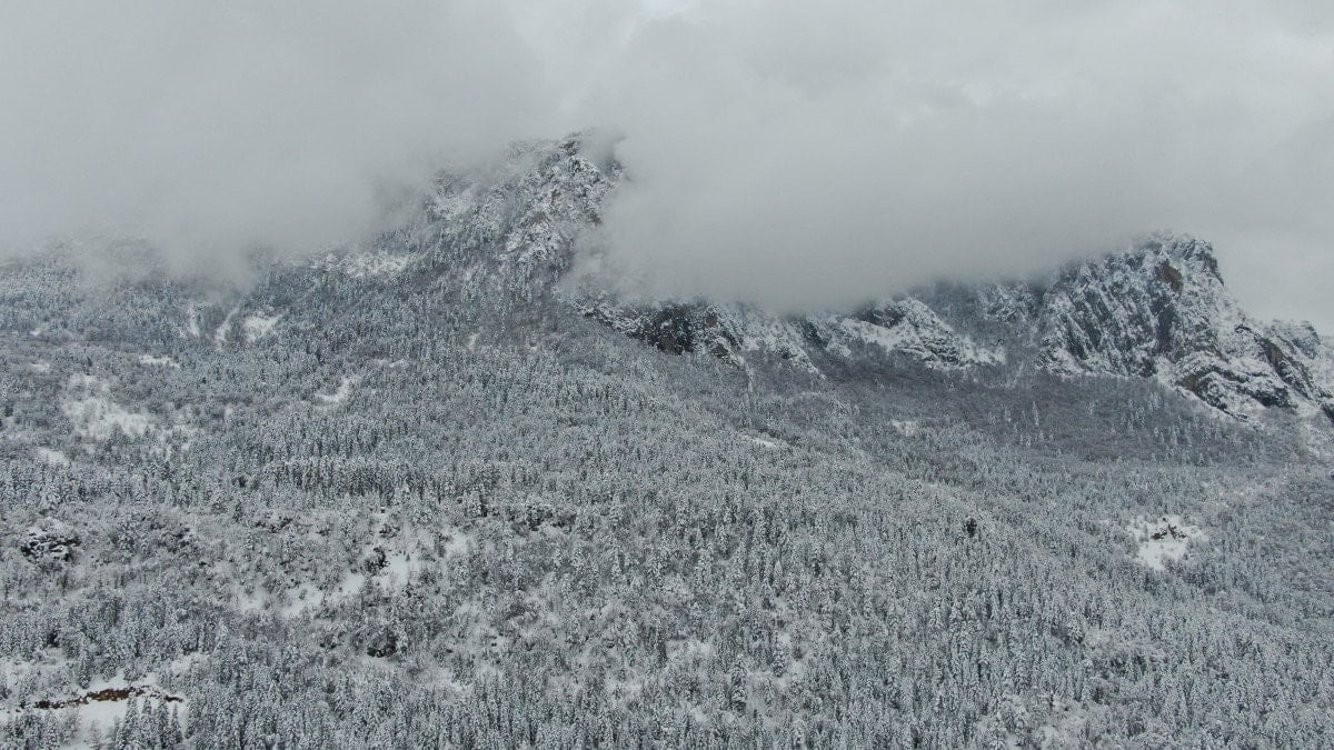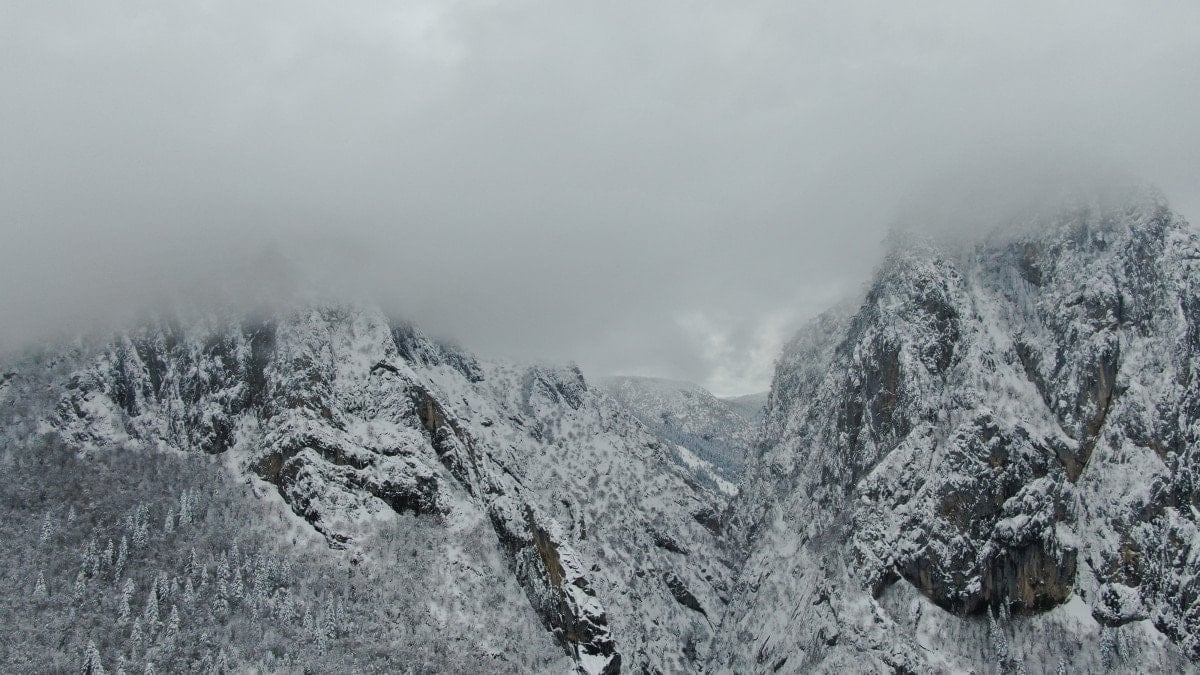 Kastamonu’nun Küre ilçesinde yer alan Küre Dağları Milli Parkı içerisindeki Ersizlerdere Kanyonu Tabiat Parkı, kar yağışıyla birlikte beyaz örtüyle kaplandı.