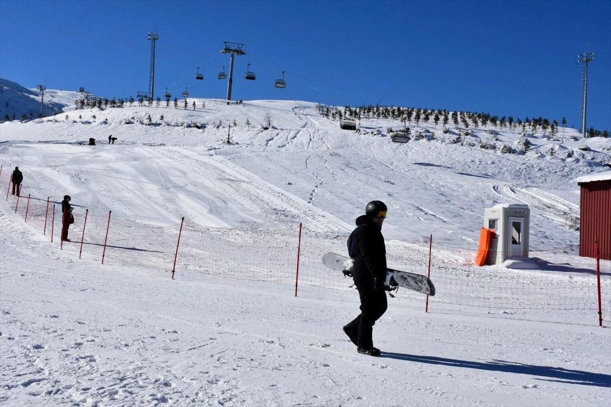 Uygun hava koşulları ve yeterli kar kalınlığı sayesinde kayak merkezlerine gelen ziyaretçiler kayak, snowboard ve kızakla keyifli vakit geçiriyor.