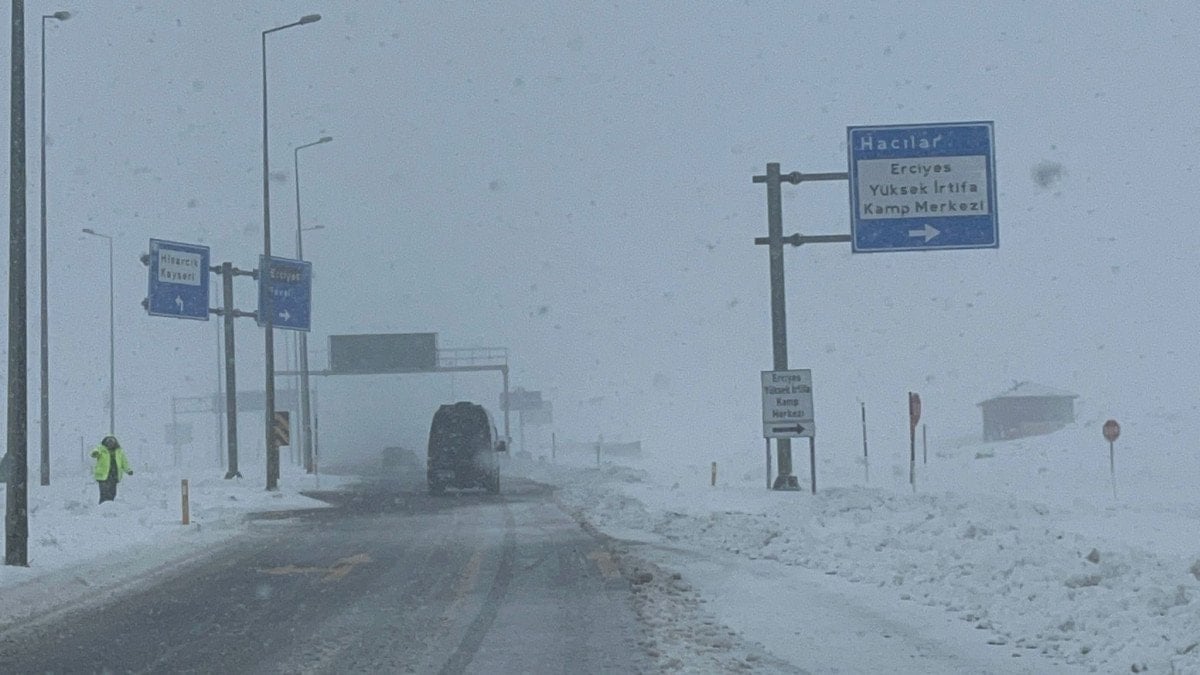 Kayseri-Erciyes kara yolu da tipi ve sis nedeniyle çift taraflı olarak ulaşıma kapandı.