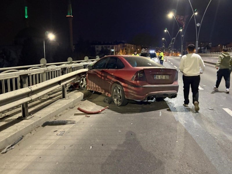 Kayseri’de kontrolden çıkan otomobil bariyerlere çarptı
