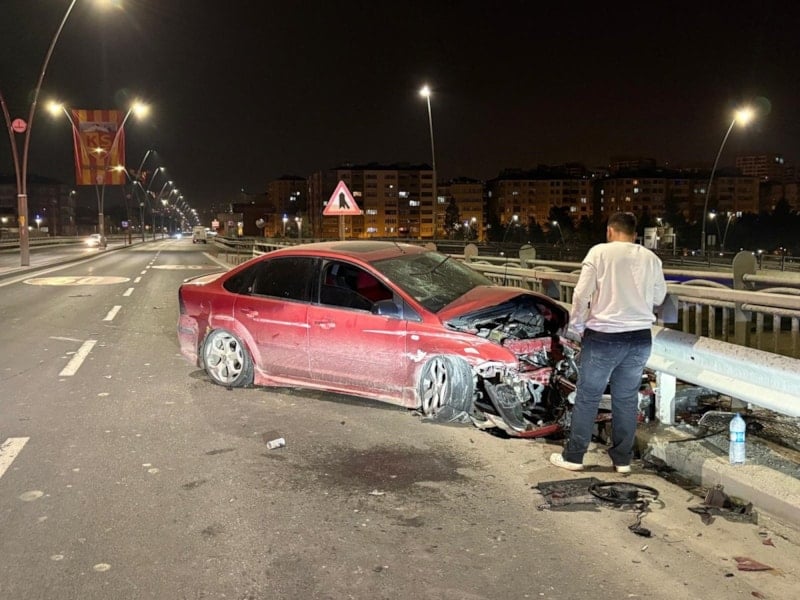 Kayseri’de kontrolden çıkan otomobil bariyerlere çarptı