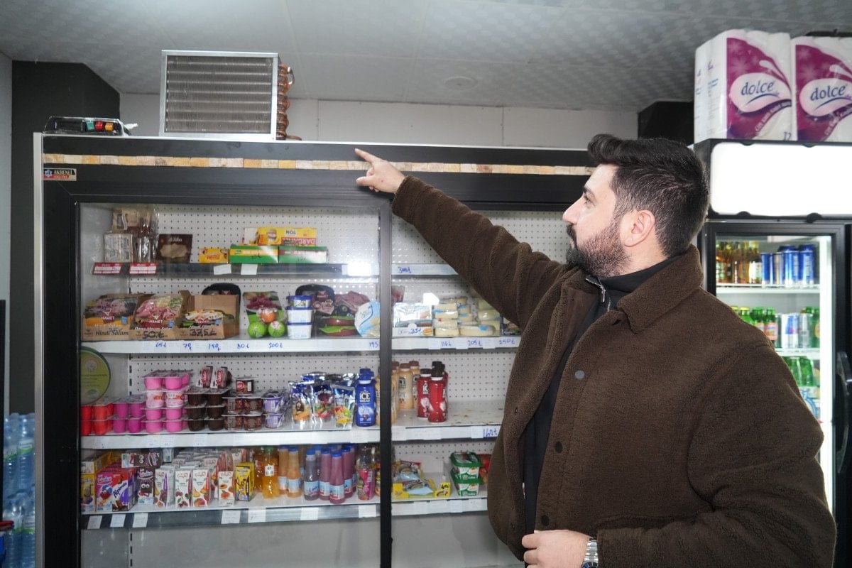 Soğutuculu reyon dolabının radyatör kısmında yaşanan patlama anı, güvenlik kameralarına yansıdı.