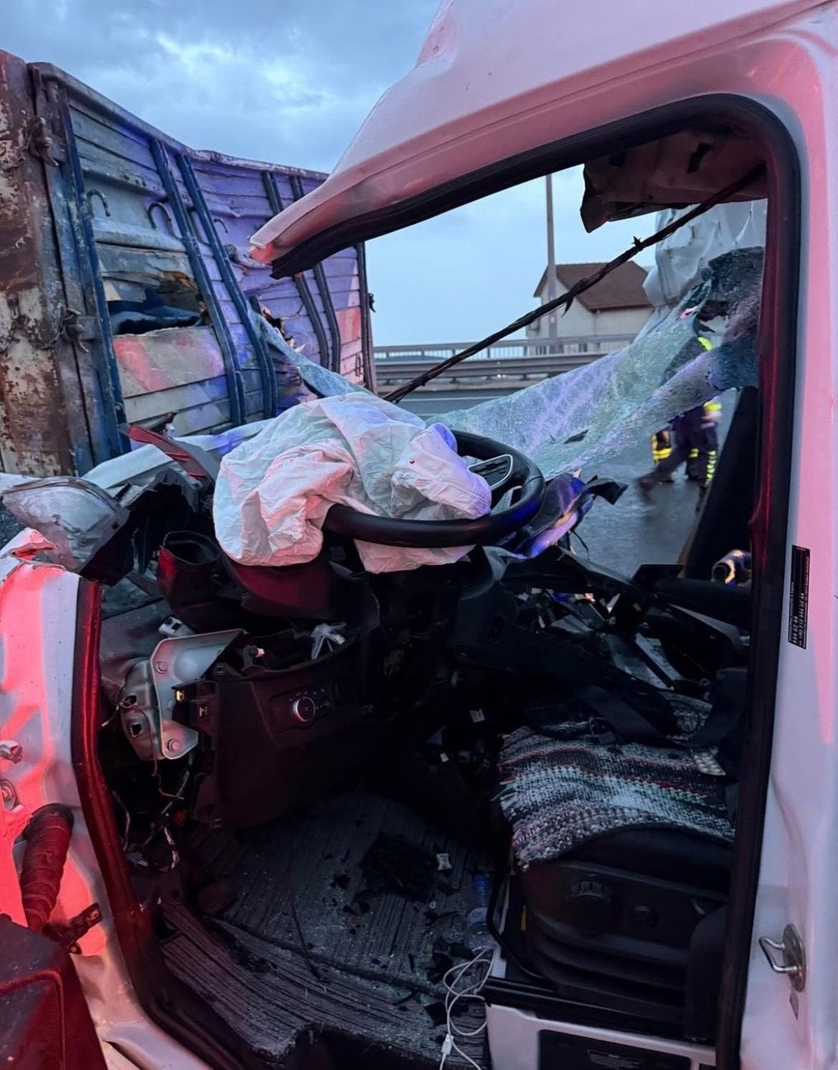 Kocaeli Gebze ilçesi TEM Otoyolu ile Kuzey Marmara Otoyolu bağlantı yolunda S.K.’nin kullandığı servis minibüsü, aynı yönde giden A.C. idaresindeki demir sac yüklü kamyona arkadan çarptı.