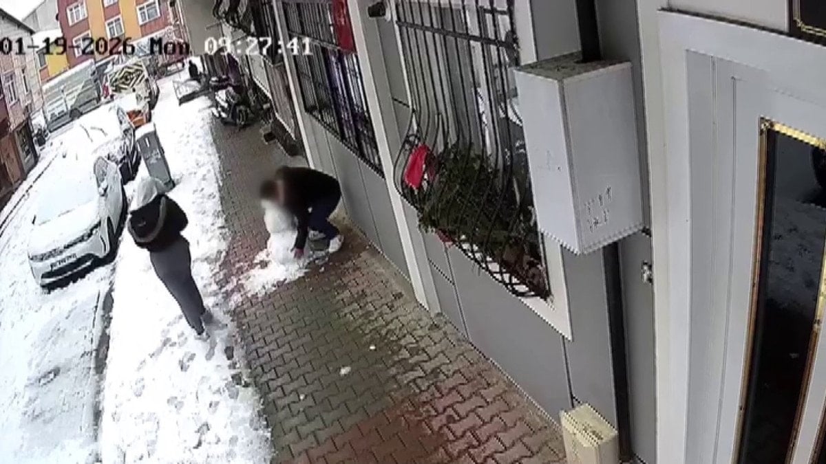 Şahsın kardan adamı yerinden söktüğü sırada yapının bir bölümünün dağıldığı görülürken yaşananlar, çevrede bulunan bir iş yerinin güvenlik kamerası tarafından saniye saniye kaydedildi.