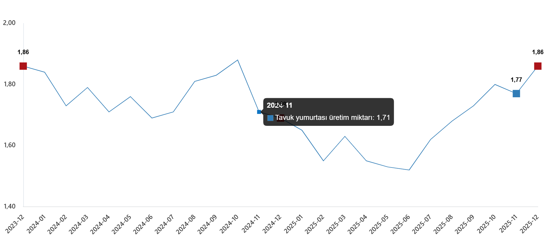 Tavuk yumurtası üretim miktarı, Aralık 2025
