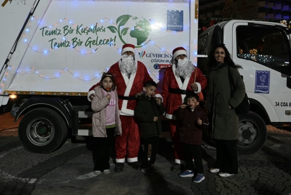 Kuşadası Belediyesi, çöp toplayıcılara Noel Baba kostümü giydirdi